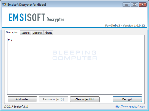あなたが、この身代金要求型マルウェアに感染したのなら、単純に、下のリンクから decrypt_Globe3.exe をダウンロードし、それをデスクトップに保存しなさい。